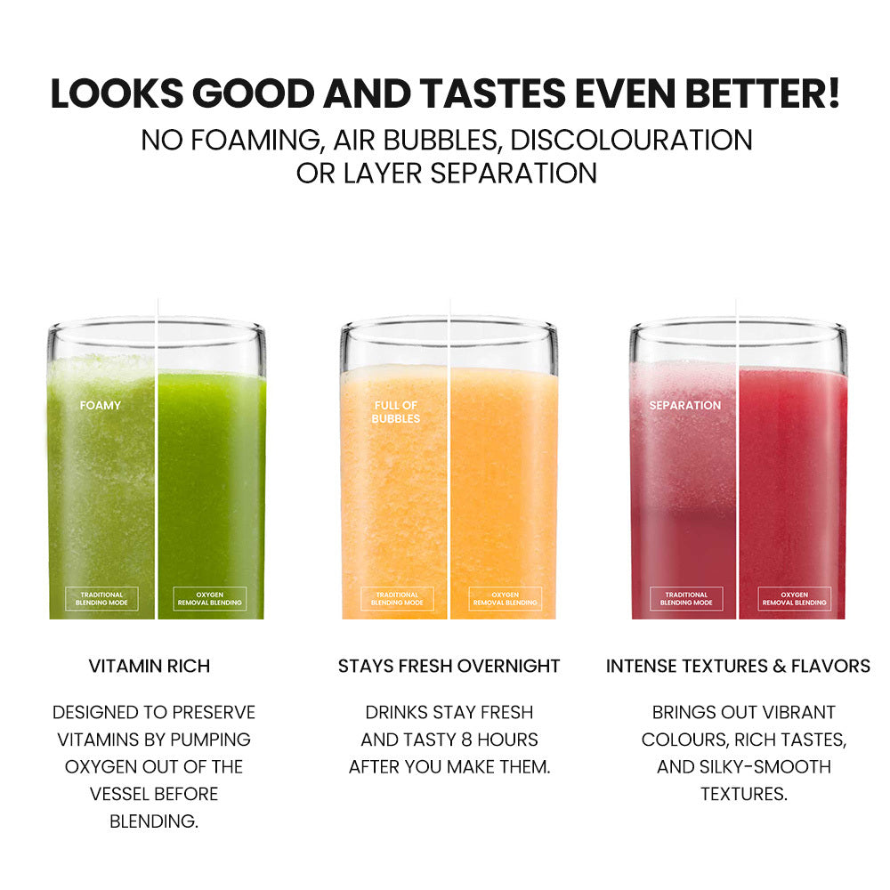 Oxidation is the enemy of food freshness, colour and nutrition. The moment ingredients are cut up they begin to oxidise, losing colour, taste, texture and nutritional value. The PolyCool Vacuum Blender is equipped with a sensor that ensures that the blending process only starts once all the air is vacuumed out. Vacuum technology makes sure that your smoothies won’t have any foaming, air bubbles, discolouration or layer separation–so it won’t just look and taste better, but will also retain up to 75% more vitamins and nutrients!